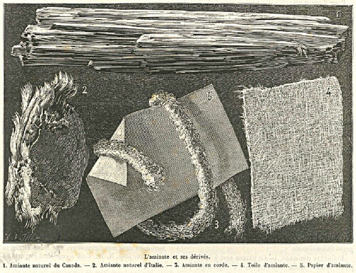 On peut, au moyen de l’amiante, confectionner des tissus ou des papiers incombustibles ; mais malgré l’intérêt que présentent de semblables produits, ils ont toujours été à peu près délaissés et sont tombés dans l’oubli.